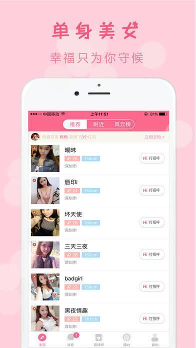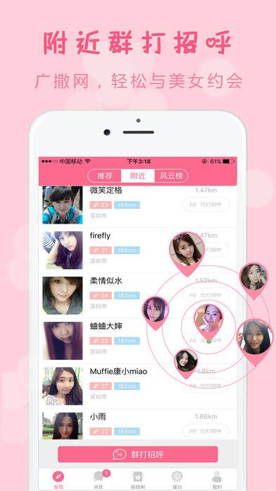 查看附近的单身男女,只要你心动,打个招呼就能直接邀约!