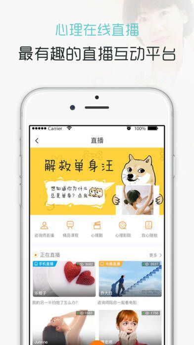 【全屏直播】专业心理咨询师进行在线直播,分享婚恋情感、亲子教育、职场社交、青春成长等方面的知识与经验。您可以聆听专家见解,还能与老师实时互动,畅聊心事。