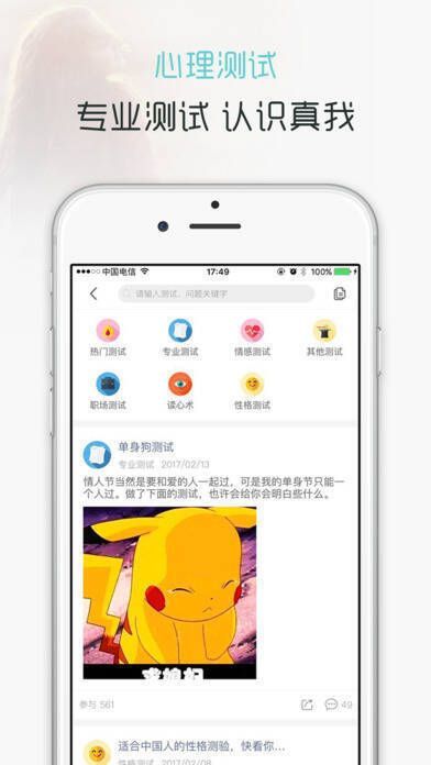 2、心理测试:提供常用的专业心理测试和趣味心理测试。