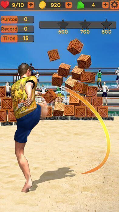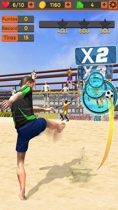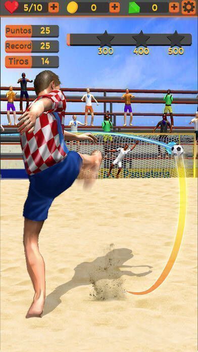 在阳光灿烂的沙滩上进行一场精彩的足球比赛。射门时要把球射向目标,同时避开守门员或障碍物。可以通过让球穿过环或者击中两极来增加分数。游戏首个层面的门将是新手,不过随着关卡推进,进球难度会越来越大。在比赛中挑战对手,能获得杯子碎片,集满杯子后,就能开启通向另一个杯子的新道路。