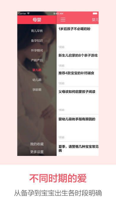 2、【产前产后】在怀孕期间以及产后月子阶段需要格外留意,应用内提供饮食、情绪、健康等全方位的实用内容,助力妈妈生出健康宝宝。