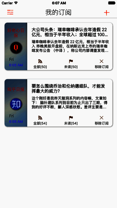 1、RSS掌上阅读器专为苹果用户打造,是掌上必备的全新阅读工具,支持的板块十分丰富。