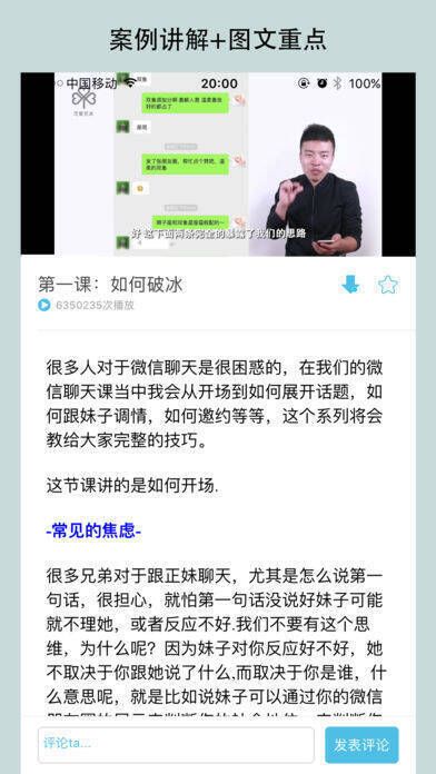 采用智能聊天技术,拥有上万种恋爱话术。可自由搜索,还能按套路模板聊天,强大的智能聊天功能让你永不缺话题。所有话题持续永久更新,堪称经典的“智能代聊 APP”,是恋爱泡妞的神器。有成千上万可搜索的恋爱话术、套路惯例与聊天模板,且永久更新。无需记忆恋爱话术,追女生没话题或遇到不懂的聊天场景,搜一搜话术复制回答就能轻松搞定。
