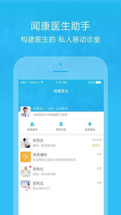 1、闻康药品助手专为医生定制,能让医生随时随地开展在线问诊咨询。
