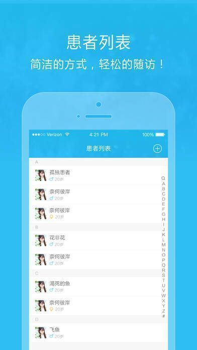 2、患者管理:对患者列表进行管理,查看患者基本信息与沟通记录,随时掌握患者病情进展。