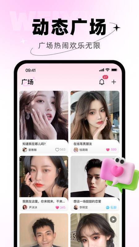 微语交友备受欢迎的高颜值女孩聊天功能,能让用户体验一周好友的乐趣,还可线下见面约会,带你步入爱情天地。