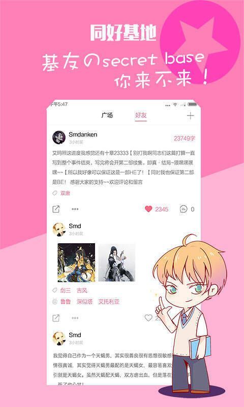 《嗨皮皮》是一款超有趣的漫画二次元社区软件。在这里,你能够结识众多二次元朋友,和他们分享自己的绘画作品,随时展开互动交流。