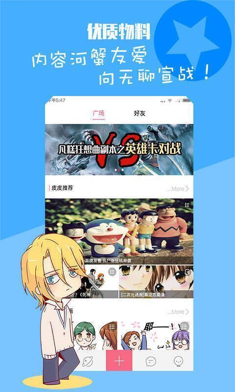 不管你之前是喜欢类似漫画社区软件的用户,都可以来参加自制漫画《皮皮学院》的创作,新番连载,你也能成为主角;不仅能看,还能找到志同道合的好友一起玩,能涂鸦画图、天天 P 图、美拍、耽美玩脸优等。