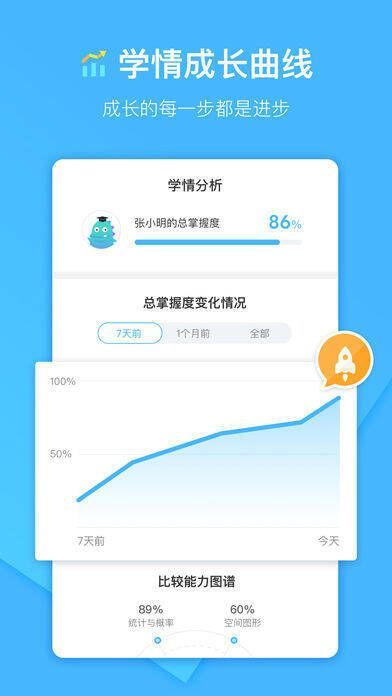 3、学情分析:绘制孩子的成长曲线,关注每一次进步。分析孩子各知识点的掌握情况,了解与平均水平的差异,有针对性地进行补弱增强。