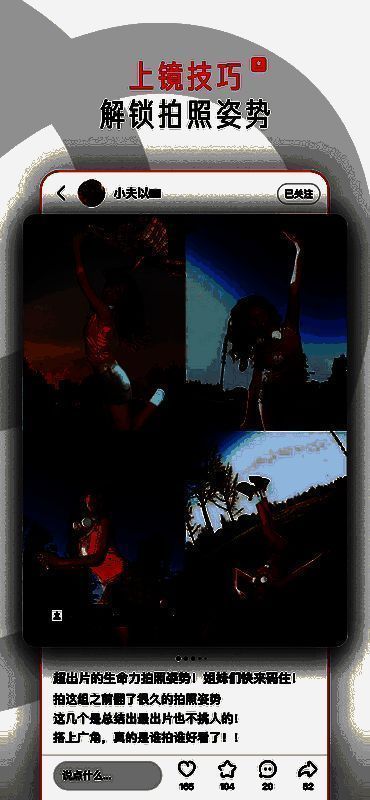 打开应用就能在线实时查看相关构图角度。用户可查看拍照姿势,轻松拍照。还能在线获取更多时尚灵感。也可在线分享自己的生活。支持用户在线便捷畅享游玩世界。