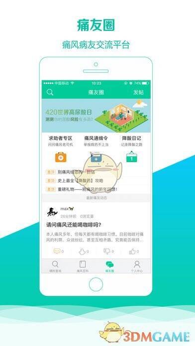 平台设有痛友圈,汇聚全国痛风患者,大家在此分享知识,相互监督饮食、鼓励运动,即便患有痛风也能享受生活。