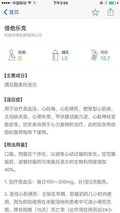 「用药助手」由国内规模最大的医药专业网站丁香园团队研发,收录上万种药品说明书、上千种临床用药指南,还有实用的临床路径、医学计算、相互作用查询等功能。数据权威可靠且持续更新。该应用为临床医生、药师、护士及医疗人员提供便捷的药物信息查询工具,依据临床医生实际工作流程优化设计,满足医务工作者随时查询药物说明书信息的需求。应用曾获2011中国移动开发者大会创新应用奖、创新工场旗下豌豆荚设计奖,入围极客公园2011中国互联网创新产品评选。非专业医药人员推荐使用「家庭用药」。