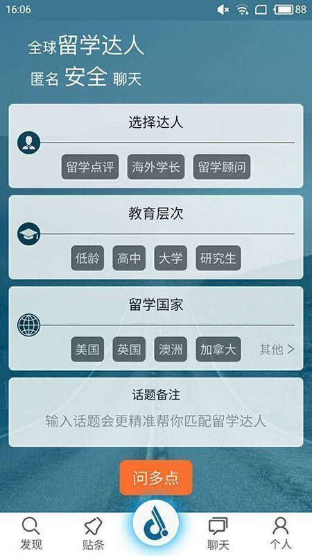 《留学问多点》是一款面向留学生的专属资讯软件,它涵盖了你想查询的各类消息。在这个平台上,你能结识众多志同道合的留学生,告别海外的孤独。无论是留学前还是留学后,用户都能放心挑选留学相关服务机构或个人,观看留学讲座,结识海外学长。快来下载,开启你的留学好帮手之旅!