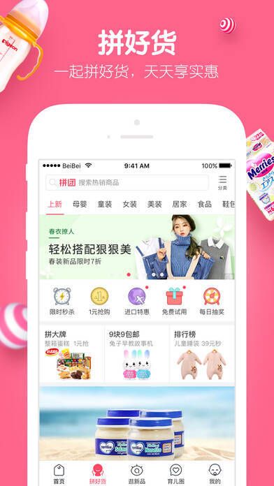 1、贝贝早春焕新季,靓妈萌宝享受优惠。