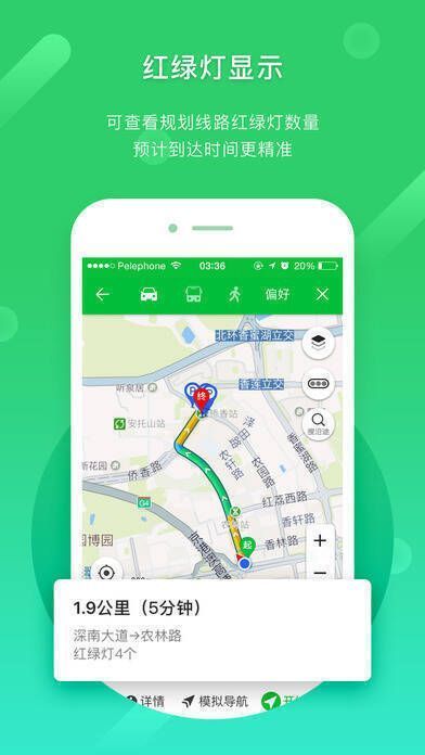 5、【红绿灯】规划路径预览时,会显示沿途红绿灯数量,让行程概况更清晰。