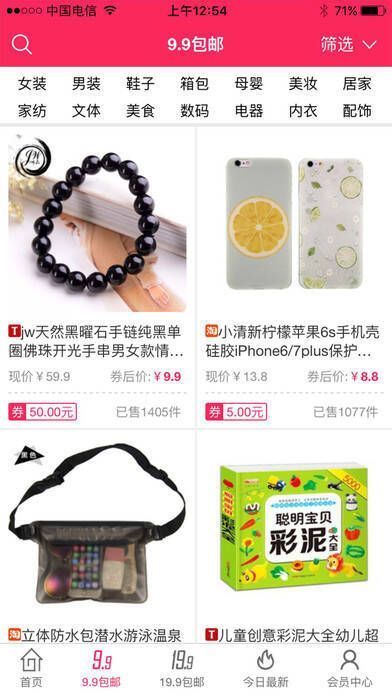 2、【折扣优惠】全场商品低至 1 折包邮,还有九块九包邮专栏。