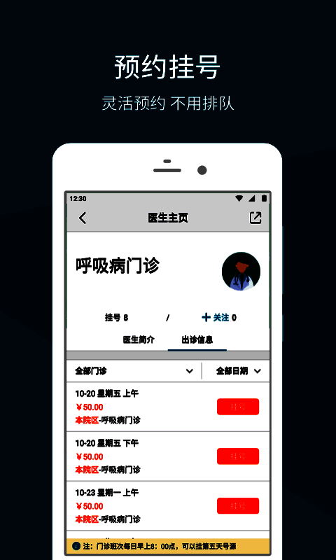- 支持专家一键搜索,在搜索栏输入专家名字即可查看其出诊信息。