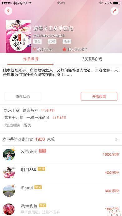 3、社区功能完备,可与大神面对面交流,还能和众多小伙伴一同探讨剧情,全程参与大神的小说创作。