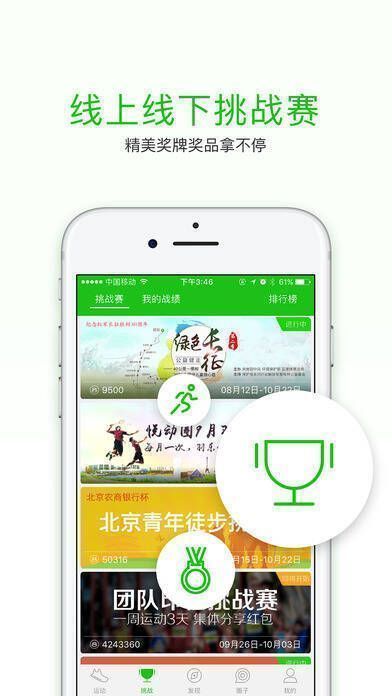 2、红包挑战赛,双重激励:每日跑2公里可赢现金红包,个人PK赛、团队印花赛能赢健身礼包,游戏玩法让人爱上运动。