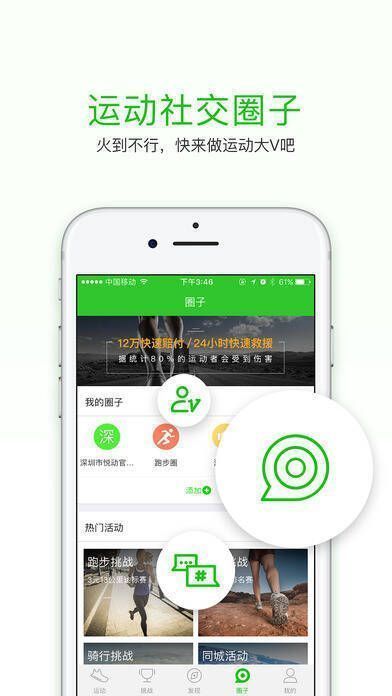 3、悦动健身圈,运动不枯燥:有活动圈、跑步圈、减肥瘦身圈,可分享心得、约跑互勉。