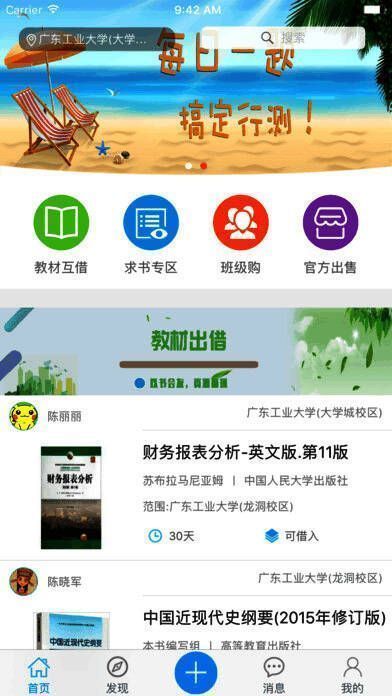 可自行发布出借和出售动态等买家联系;最新出借动态会推送,点击查看详情可速联系借阅;借购书时可搜索书名找相关内容;求书专区可一网打尽借、售等动态;能买到旧版教材和实用复习资料,比书店划算,还有机会买带笔记的好书。