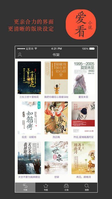 《爱看小说》是一款能让您爱上看小说的书城APP。它内置了海量免费图书,涵盖各种类型,能满足您多样化的阅读需求。软件在画面和操作设计上十分人性化,让您能无忧无虑地享受看书的乐趣,进而爱上阅读。该APP囊括了当下最热门的小说,并且实时更新连载内容。