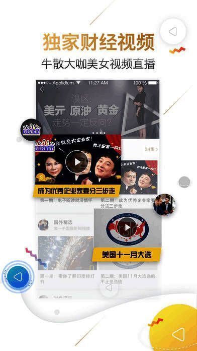 - 【财经视频】:财经主播解读快讯、经验丰富的牛散达人分享选股技巧、财经专家分析局势、一手财经现场视频报道,带来不一样的财经视频直播新体验。