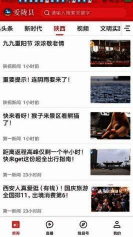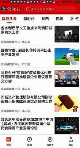进入爱陇县应用,可查看新闻分类和类型;选择本县头条新闻,点击进入文章阅读;点击观看视频,播放并查看内容;选择直播新闻,立即进入观看直播;浏览陇县号的所有资讯新闻并阅读;点击分享,即可选择分享通道。