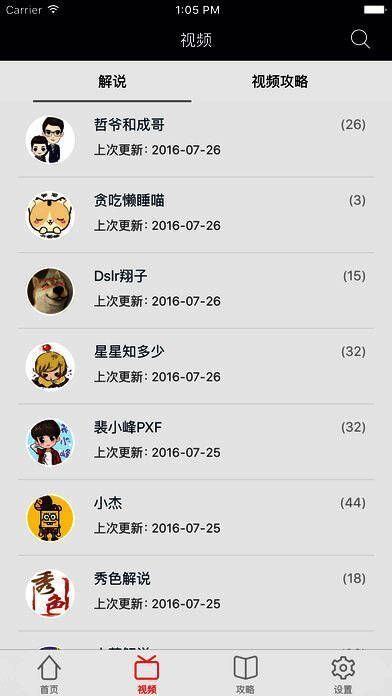 1、包含各大知名解说视频、最新攻略、最新资讯,并能在第一时间更新最新视频;