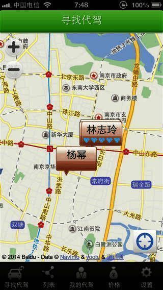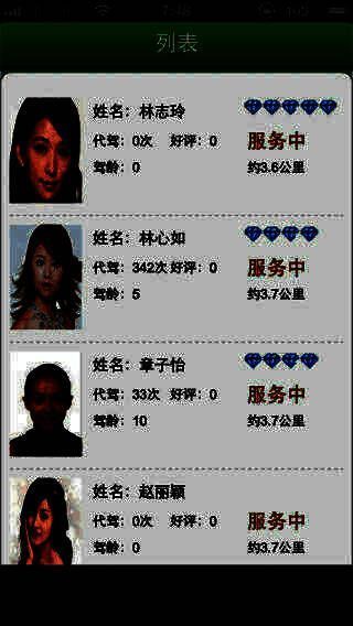 2、乘客使用软件能够找到附近的5名司机进行自主挑选。