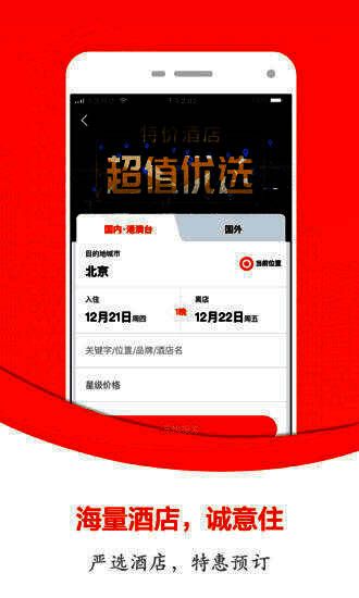 2、海量酒店,诚意入驻:严选酒店,特惠预订;
