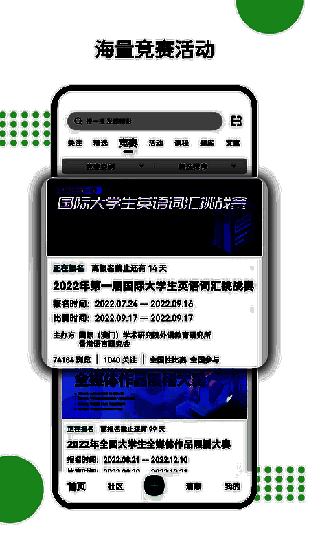 3、活动信息:及时掌握参与活动的最新动态,不错过重要日程,将竞赛作为提升自我的方式和对自己的承诺。