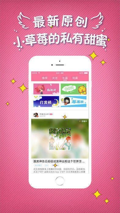 《小草莓》APP,为热爱阅读的你呈上各类兴趣耽美小说,同时这里还有海量网络最新最热的新潮小说。喜欢阅读就别错过这款软件,感觉不错就赶紧下载使用!