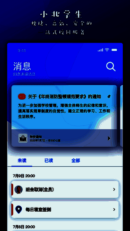 学生使用小北同学可享受便捷、高效、安全的一站式校园生活,学习方式简单。