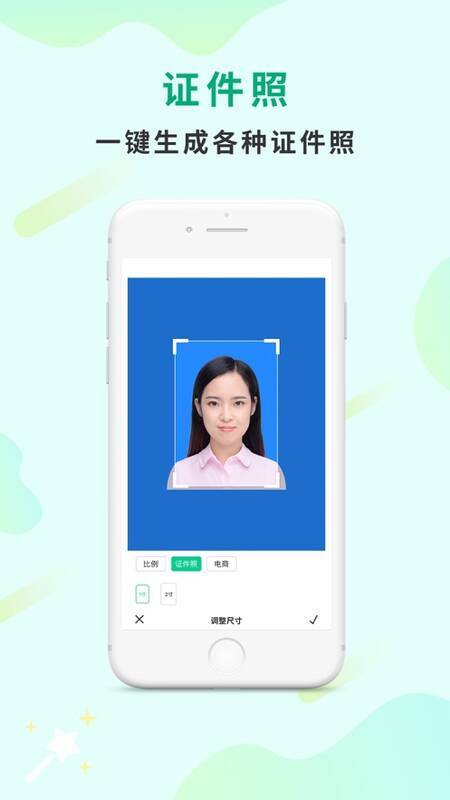 3. 精确尺寸裁剪:特有的尺寸裁剪功能,提供精确的证件照尺寸模板。用户选择所需尺寸模板,就能轻松裁剪出符合要求的证件照。