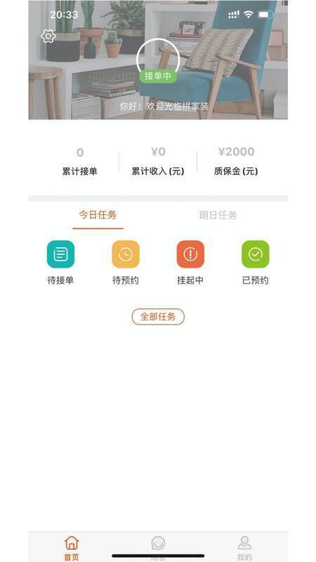 拼家装技师版app是专门为技师师傅开发的接单利器,使用这款软件能让技师师傅有单可接、有钱可赚。接单智能化,会自动匹配合适的单子,让师傅完成订单更轻松,快来试试!