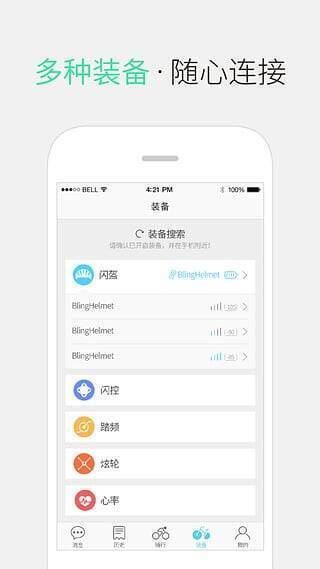4、支持按标准蓝牙协议连接智能头盔、踏频、心率计等更多智能设备。