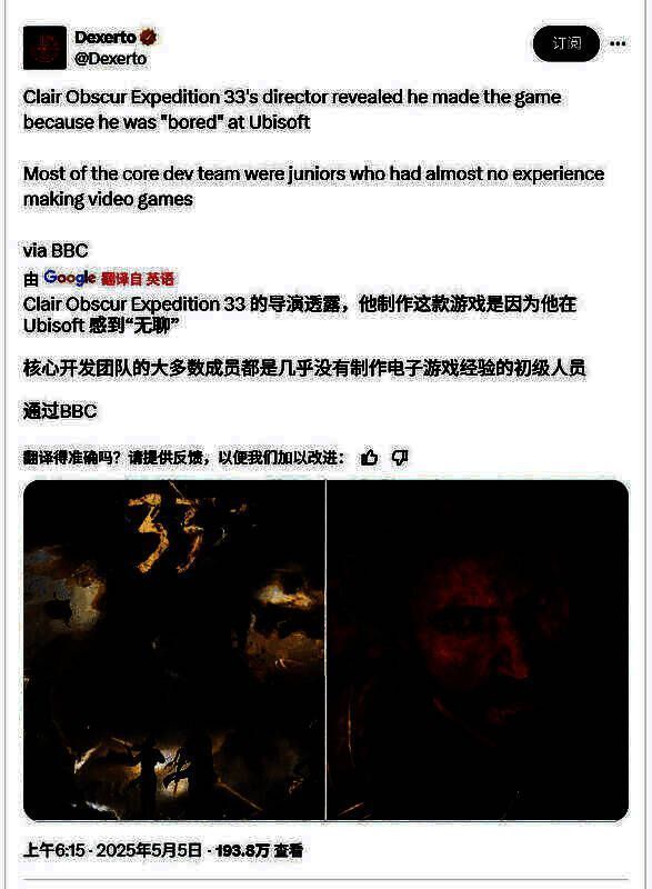 Broche最终离开了育碧,在法国蒙彼利埃成立了Sandfall Interactive,全职开发《33号远征队》。