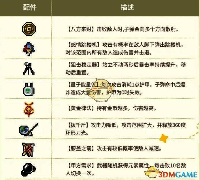 6、当主武器已携带两个配件,或铁匠给予的配件无法装配在主武器上时,配件进入配件背包。