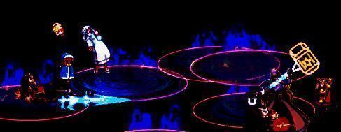 场地左右两侧会出现蓝色与黄色探照灯,跟随黄色可降低频率,蓝色可增加频率