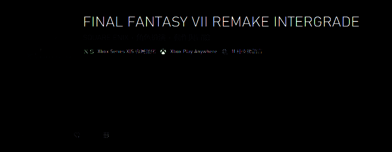 《最终幻想7:重制版Intergrade》的Xbox商店页已经上线,不但支持4K+60帧,也还支持Xbox Series X|S专属强化和Xbox Play Anywhere功能,敬请期待冬季的到来吧!