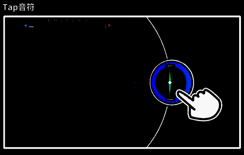 所有音符都会从中心点向外圈移动,当音符与该位置重叠时触发即可获得分数评价,(Perfect+、Perfect、Good、Miss)对应着音符触发的完整程度进行最终的分数结算。