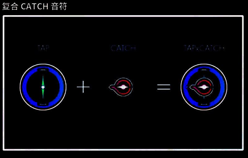 出现复合CATCH音符,则需要保持判定圈校验CATCH音符的同时,额外点击一次tap音符,非常考验玩家的操作水平哦。