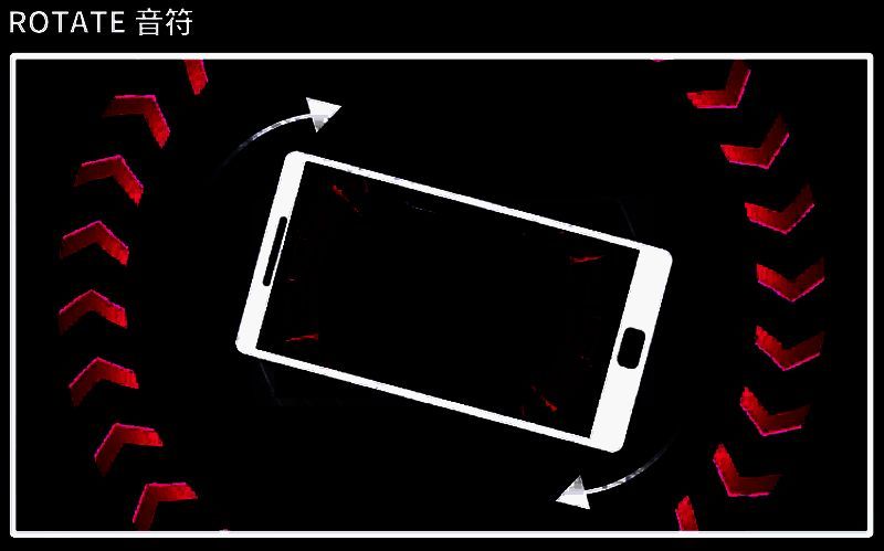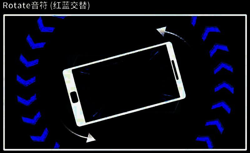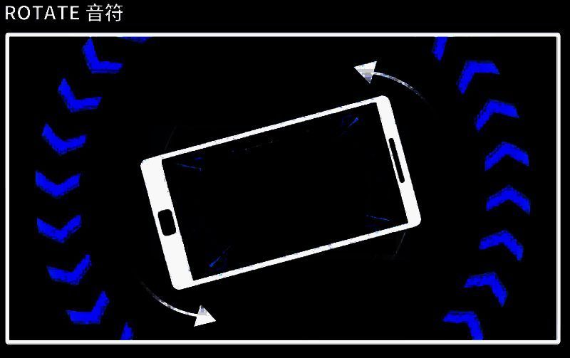 出现该音符则玩家需要将手机进行旋转,当红色ROTATE音符接近判定圈时迅速将手机进行顺时针旋转,蓝色ROTATE音符接近判定圈时快速将手机进行逆时针旋转。