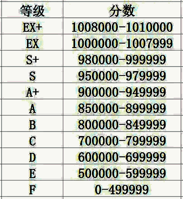 中间的分数上方便是评级,评级的判定如下所示。