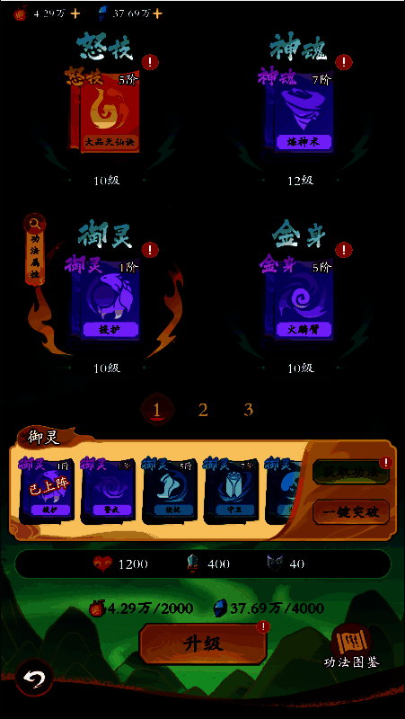 消耗功法点可以提升功法等级,提升属性。