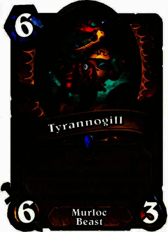 6费6/3.突袭。亡语:召唤三个2/1的鱼人,随机使其各获得一个额外效果。