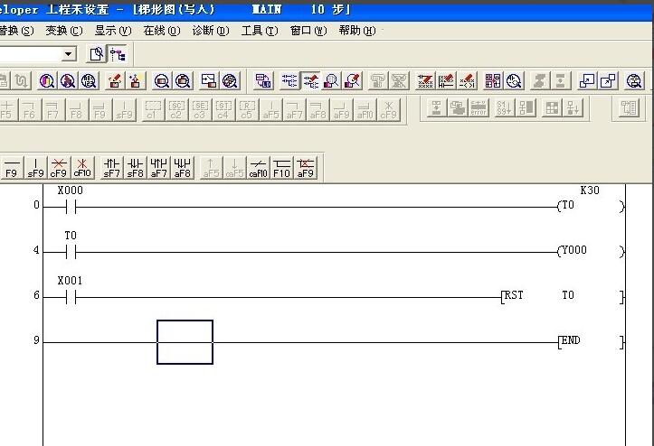 我们以T0作为PLC内部计时器,此时应注意计时器的类型:T0~T199表示100ms通用定时器,T200~T2451表示0ms通用定时器,可以在输入信号后端输入“out t0 k30”,k30表示3000ms,即3秒。