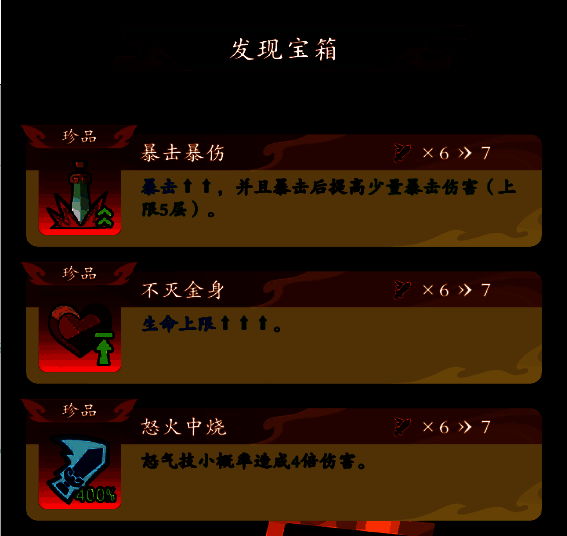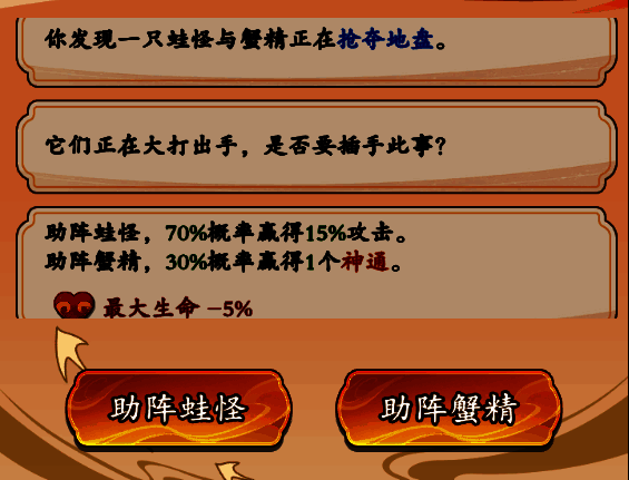 在战斗事件中击败敌人将获得经验升级,每升一级可以获得随机技能,击败精英或者BOSS还将掉落随机游戏道具。道友可以在历练自主选择故事走向,自由选择不同的收益或技能,一步步增强自己,最终击败强敌,获得历练胜利。