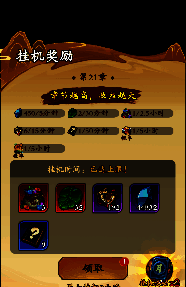 历练中每一个章节达到对应修行天数后还可以领取额外的宝箱奖励,获得丰富的道具。